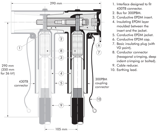 • Vật liệu cách điện làm bằng cao su tổng hợp EPDM, an toàn cho người sử dụng và vận hành có thể chạm vào vỏ đầu cáp ngay cả khi đang vận hành.